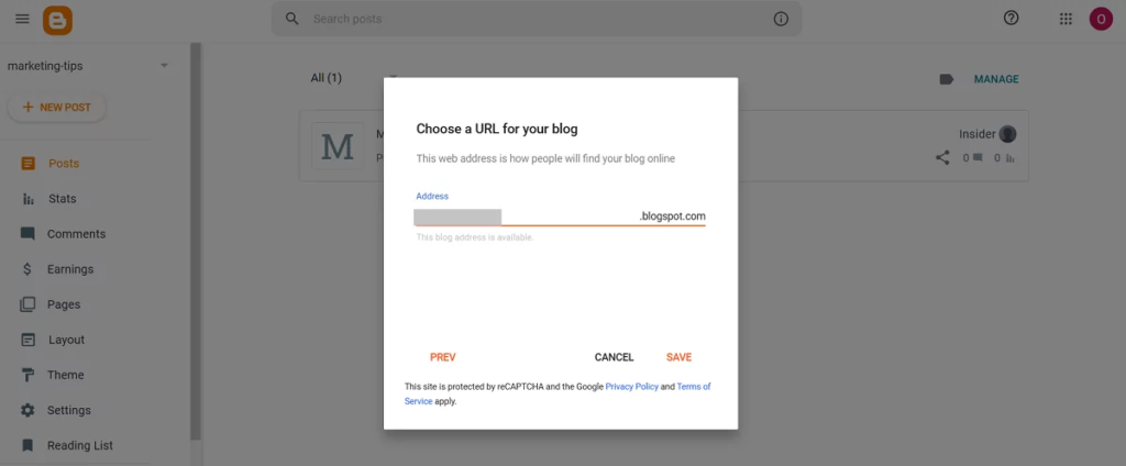 • Enter the blog’s name